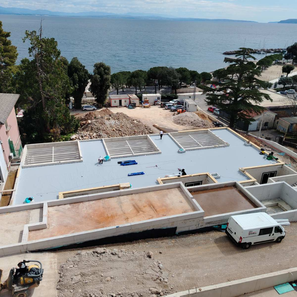 Na projektu pomoćnih građevina renomiranog hotela Marriott u Ičićima izvedeni su radovi hidroizolacije temeljnih i nadzemnih dijelova objekata. Posebna pažnja posvećena je detaljima spojeva i prijelaza između različitih materijala, kako bi se osigurala dugotrajna zaštita od prodora vode i vlage u zahtjevnim obalnim uvjetima. Korišteni su visokokvalitetni hidroizolacijski sustavi koji jamče pouzdanost i otpornost, čime je objektu osigurana stabilnost, trajnost i funkcionalnost kroz dugi niz godina.